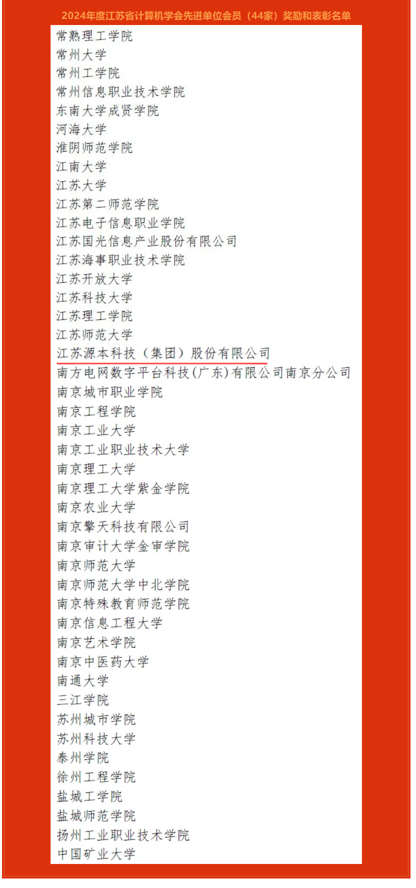 附:关于2024年度江苏省计算机学会杰出贡献单位会员、突出贡献单位会员和先进单位会员奖励和表彰的决定(名单)